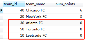 疑问:代码里面我写了“ORDER BY m.num_points DESC, t.team_id ASC” 但是为什么在积分相同的情况下没有按照 team_id 进行升序呢?