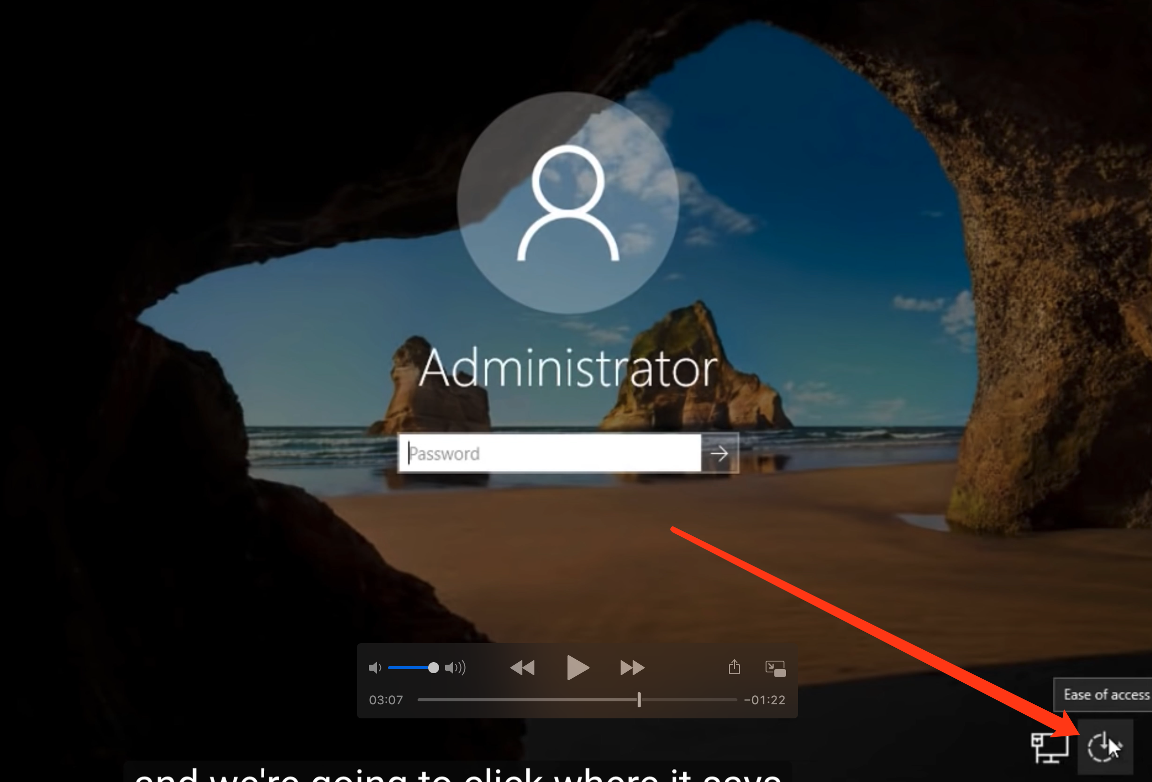 9.然后机器会重启,不要动任何按键,等机器进入登录界面,点右下角easy access,如下图: