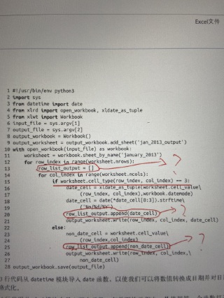 它的作用是:命令行,给出输入文件、输出文件,然后用双层循环,对worksheet所有区域数据(根据题意看,主要都是日期数据)读取、处理后,写入到输出文件。