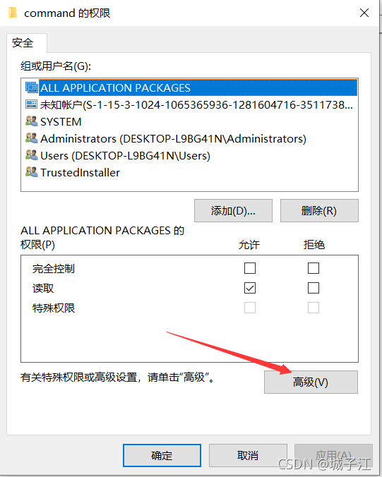 5.选择编辑---权限----高级----更改---高级----立即查找---选择Administrator/Administrators,之后确定、、、