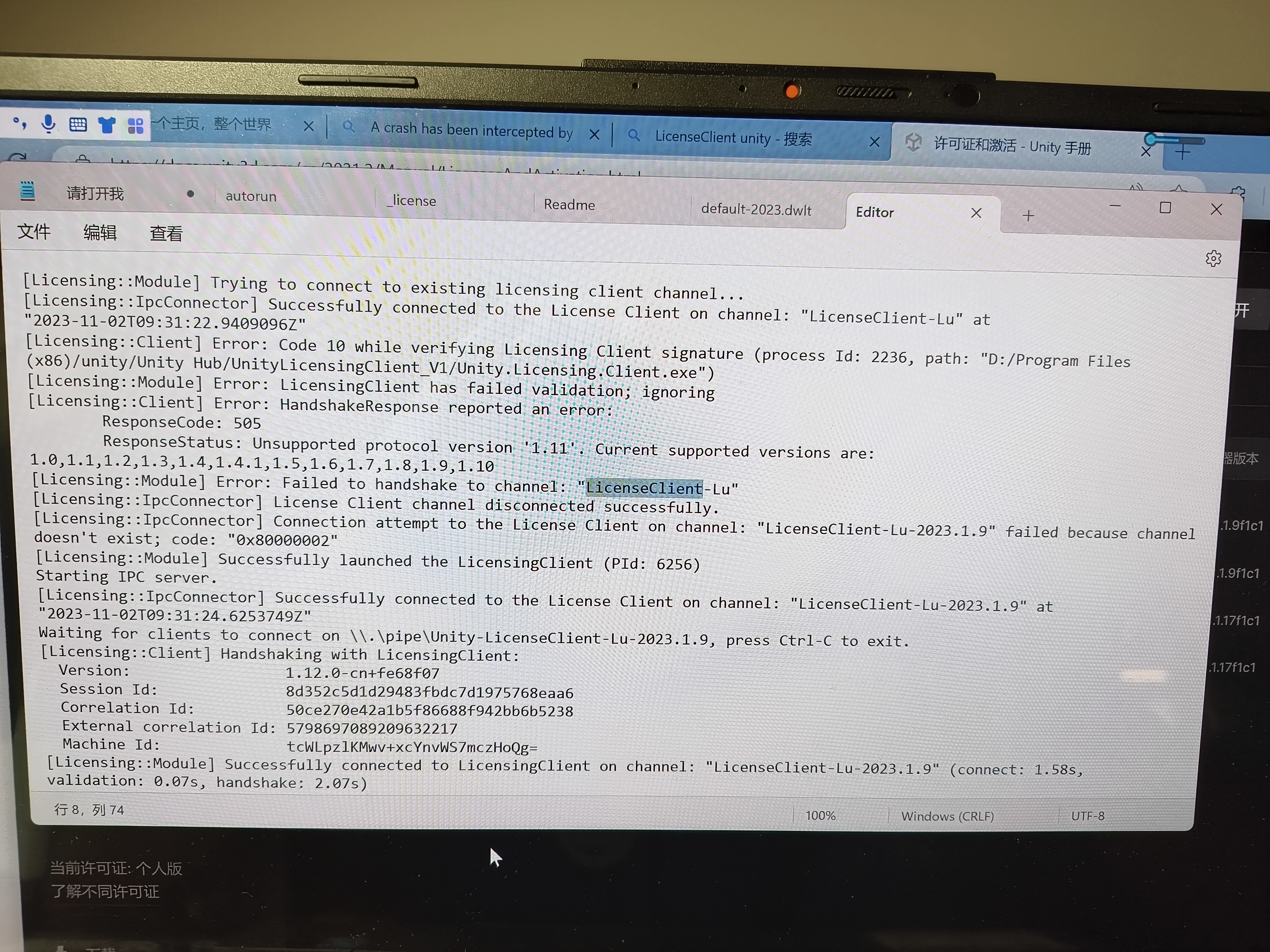 unity进入项目失败,一点击项目就显示unity bug reporter,重装unity hub也没有,然后看网上把项目文件中的library文件删了也没用。