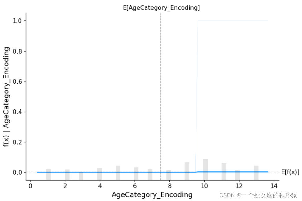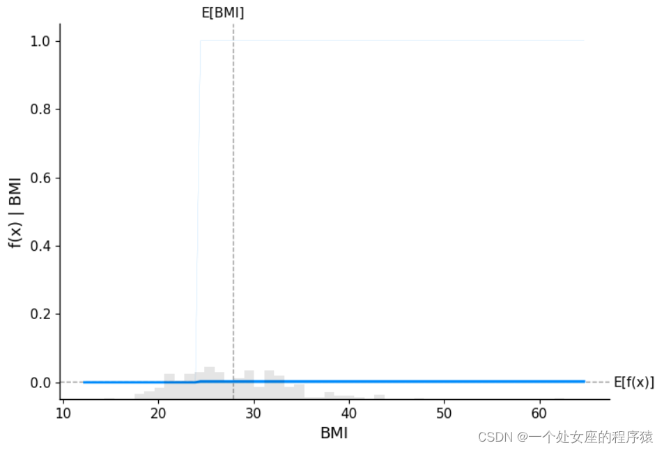 某特征的变化如何影响模型的输出及该特征值的分布,纵轴是模型的预测结果