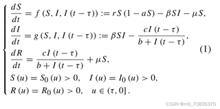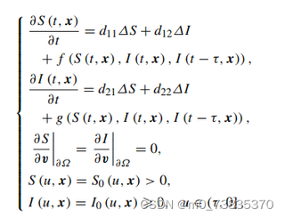 对于传染病模型SIR方程组,已经给出转化结果,即通过延迟算子(I(t-t))引入了时间延迟效应,这表明已经将空间维度忽略了,从而形成了仅依赖时间变量t的常微分方程组。