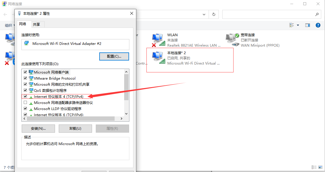 右击新出现的本地连接,打开ipv4, 选择自动活动IP地址,然后确定——确定(重新选择自匹配IP)