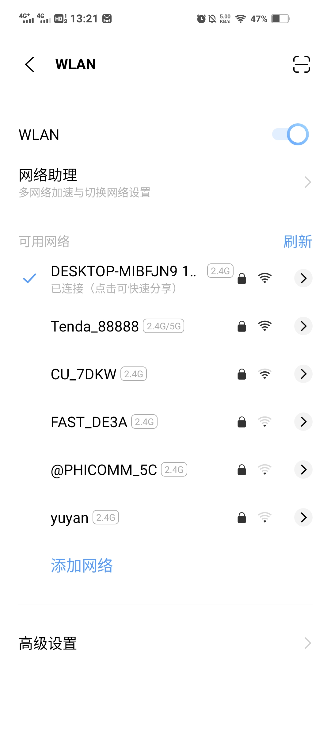 而我们勾选“允许其他网络用户通过此计算机的Internet连接来连接(N)”并且选择本地网络后,就想当于,允许把以太网的网络共享给本地连接,这个时候依赖于本地连接创建的热点才是被分配资源、有效的。