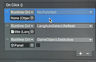 回到Unity编辑器,在你的Button上添加一个事件监听器(Event Trigger)。然后在Pointer Click事件中添加一个Call事件,并选择你刚刚创建的LanguageSwitcher脚本的SwitchLanguage方法。