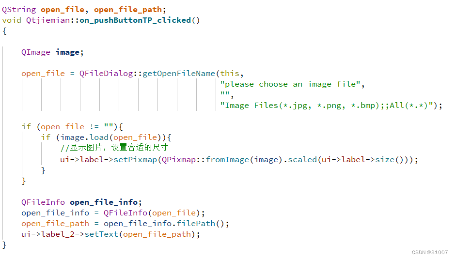 imagePath,你可以按照以下方式处理:// 确保imagePath变量包含正确的文件路径 QString imagePath = "正确的图片路径"; // 根据实际情况赋值 // 在readimage函数中使用变量 HObject hoImage; // 用于存储读取的图像 try { readImage(hoImage, imagePath.toStdString().c_str()); // 使用正确的路径字符串格式 // 如果readImage成功执行,接下来的代码可以继续处理图像... } catch (HException exception) { // 处理可能的异常,例如文件不存在或无法访问等 qDebug() << "读取图像时出错:" << exception.what(); // 输出错误信息 }调试步骤