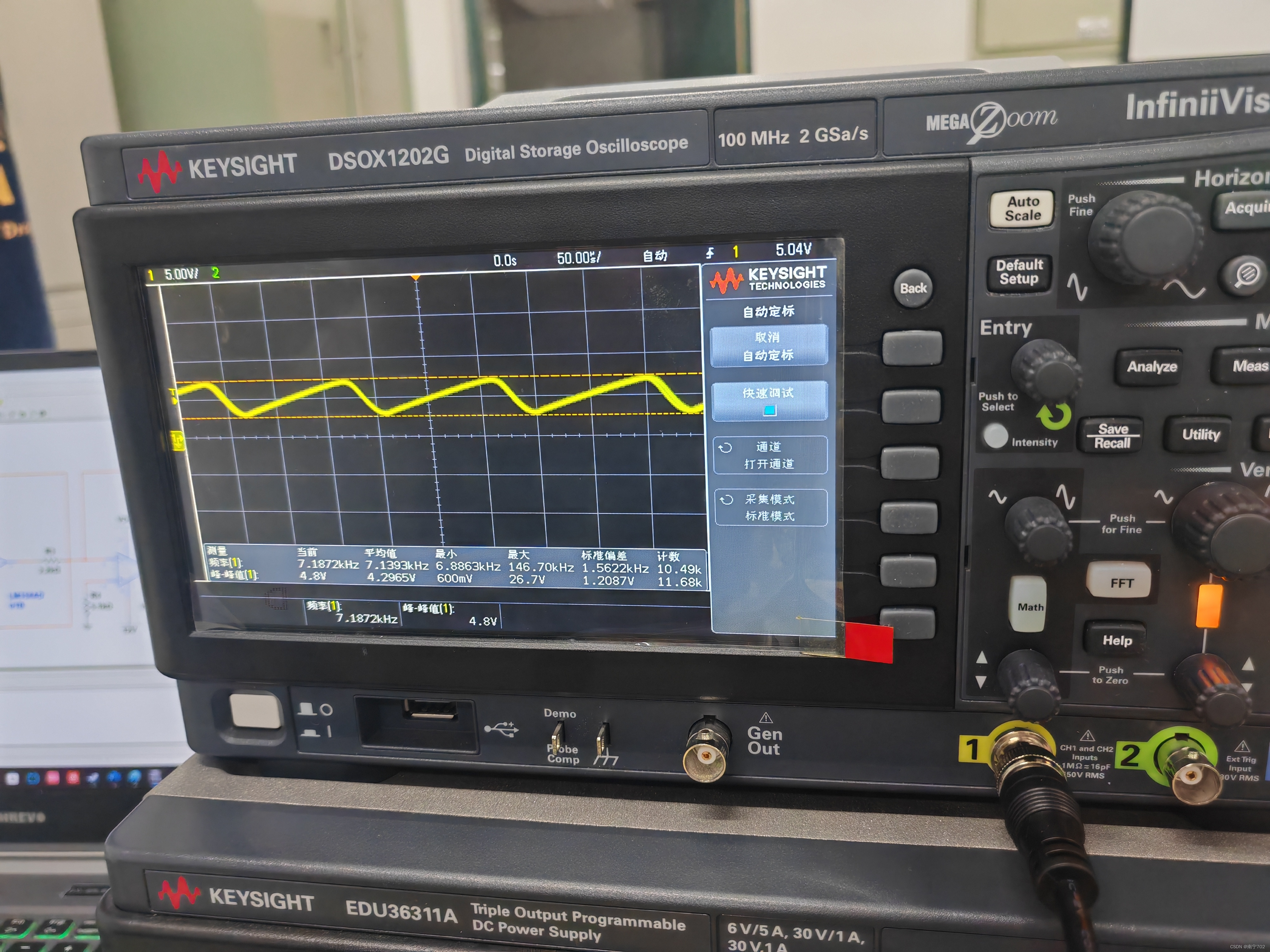 - 时间基设置不当:如果时间基设置过大,可能导致波形看起来像是正弦波或三角波。例如,当方波的频率较高(如1MHz),而时间基设置为1s/div时,一个周期的方波在屏幕上被拉伸得很厉害,看起来就像一条斜线(类似三角波)或曲线(类似正弦波)。