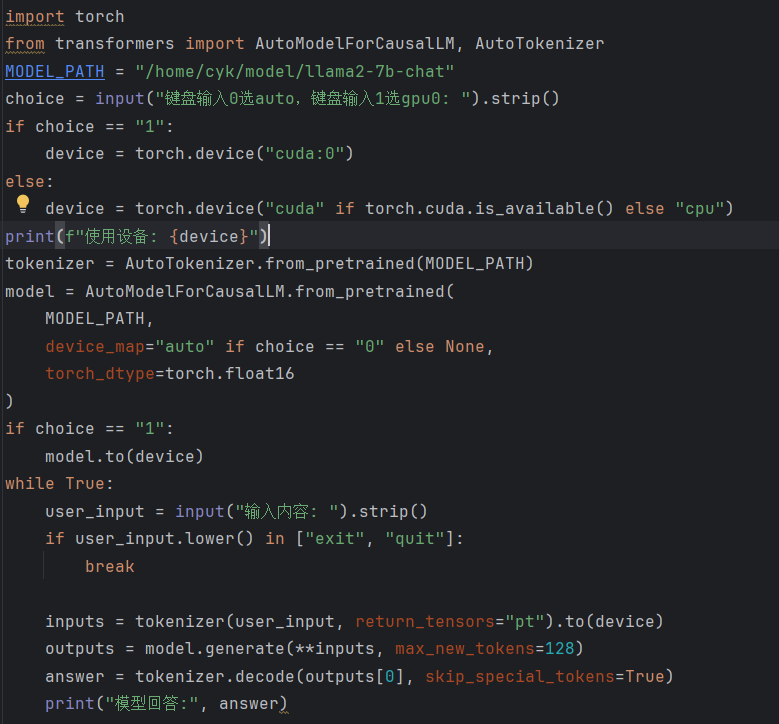 device_map="auto"时,Hugging Face 的transformers库会自动尝试将模型分配到多个 GPU 上。 - 如果你的系统中有多块 GPU(例如 2 块或更多),它会尝试将模型拆分并分布到这些 GPU 上。