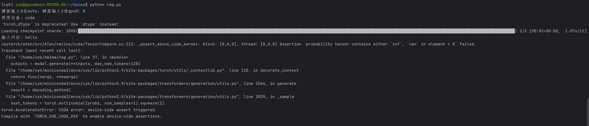 - 如果模型的某些部分无法被正确地分配到 GPU,或者 GPU 内存不足,就会报错。